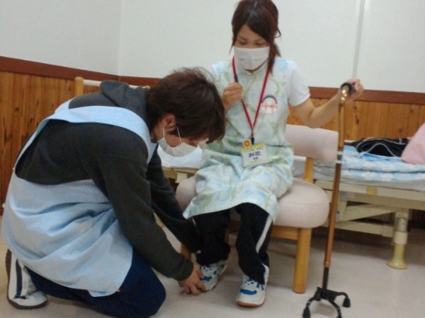 トイレ・着脱等の介護のあり方について演習をしました。