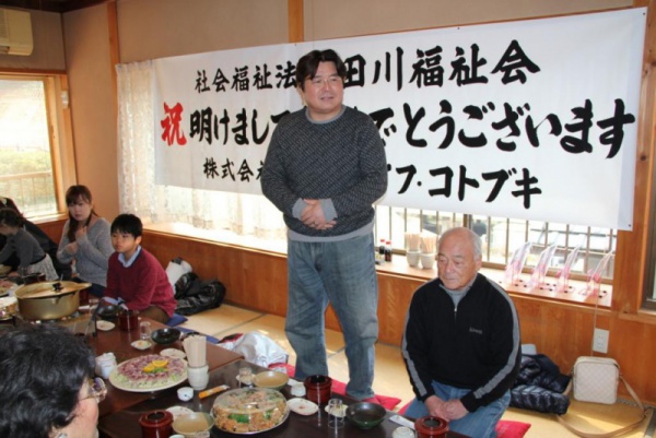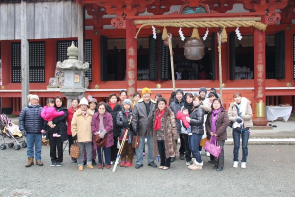 田川福祉会の年賀で挨拶を行い英彦山神宮に参拝しました。昼食は駅前で恒例の鯉洗いに鯉こくを食べました。