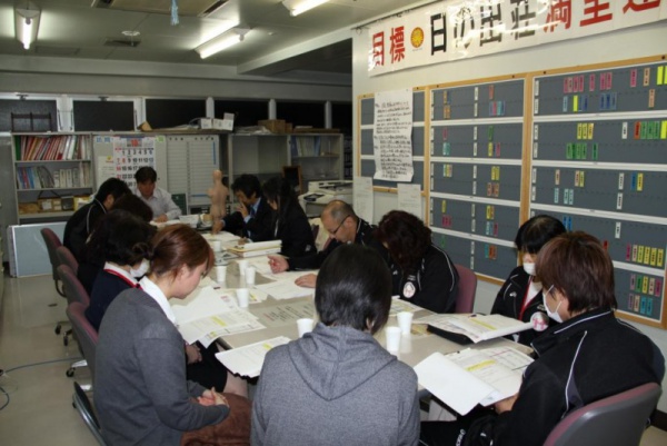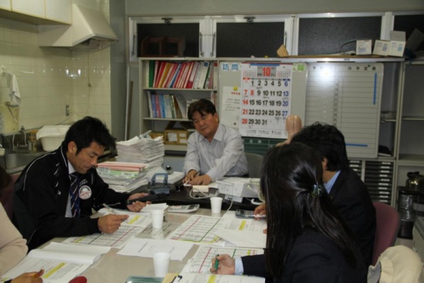 事務連絡会議を開催致しました。上期の決算が昨年よりダウンしております。