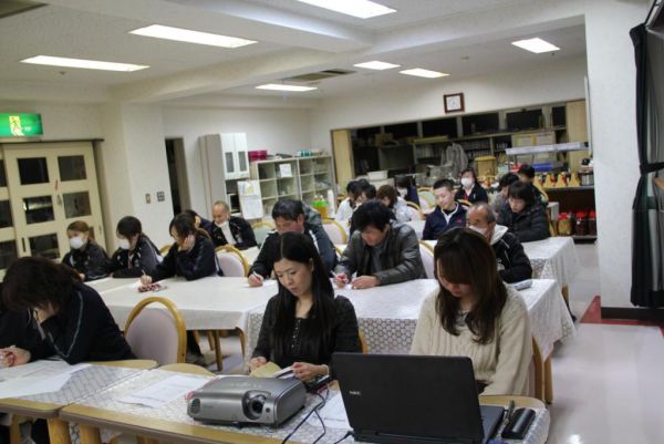 拡大会議で今月27日にある介護福祉士国家試験に向けて勉強会を開催しました。