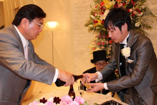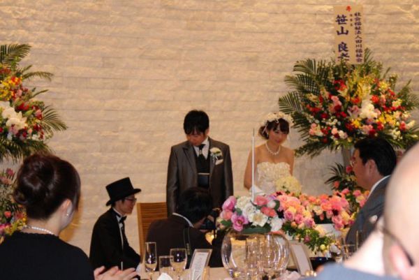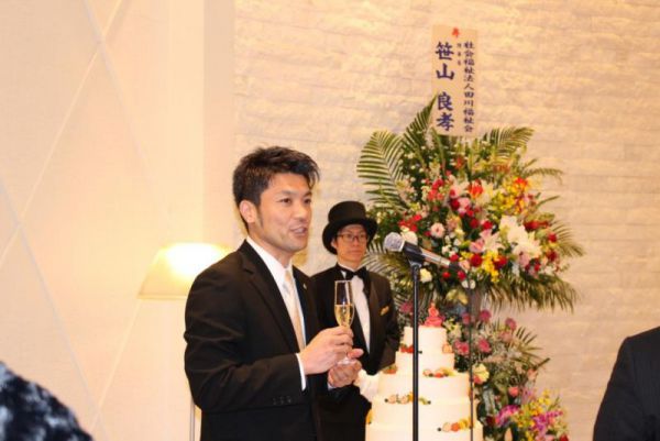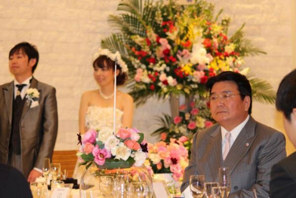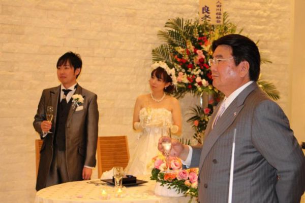 ふれ愛ビレッジ園長の結婚式に出席して祝辞とカラオケを熱唱しました。園長が結婚を機に大きく成長する事を期待します。