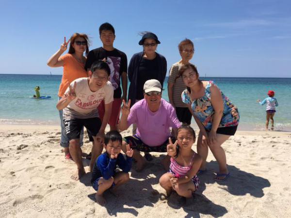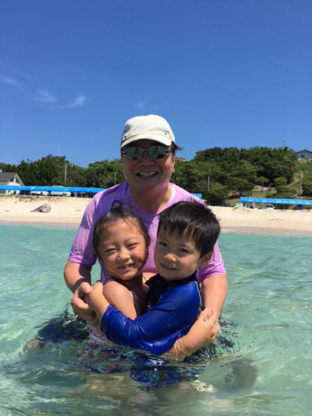 毎年恒例の海水浴に家族全員で行きました。 家族全員健康のバロメータです。