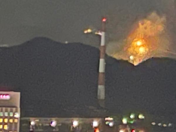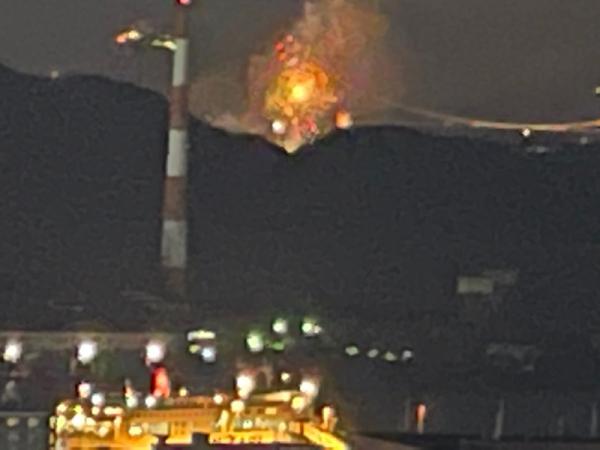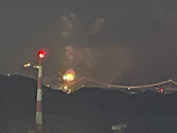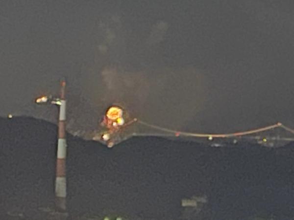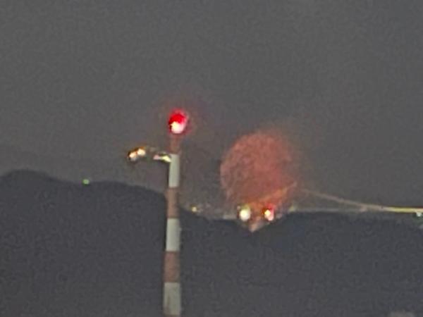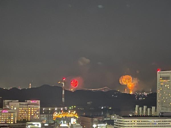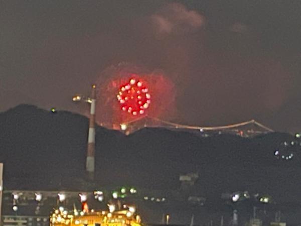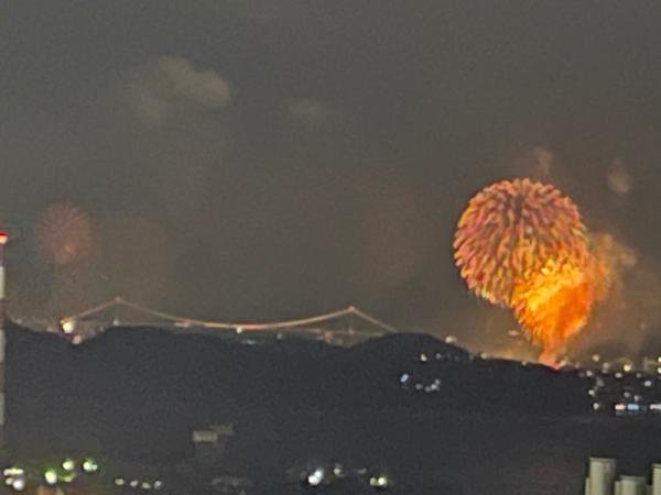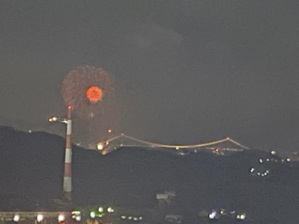 マンションから見た関門橋花火大会です。