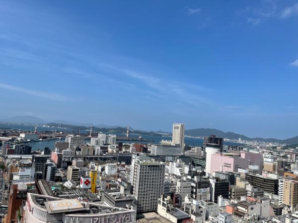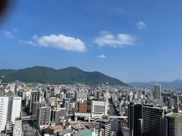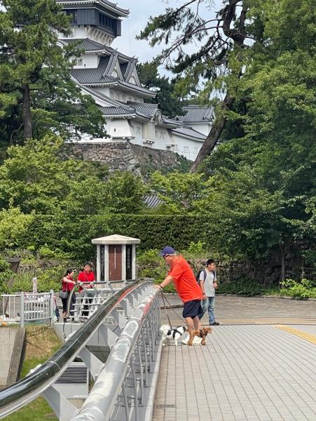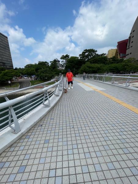 花子、桃子と散策、晴天、マンションからの展望。