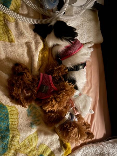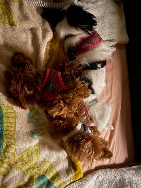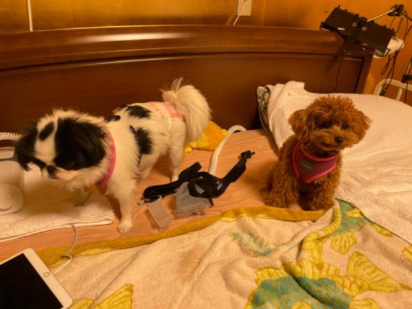 毎日寝るときは、3分の2は花子と桃子の寝るところです。 残りの3分の1が私の寝るところです。 誰が家の主人か分かりません。