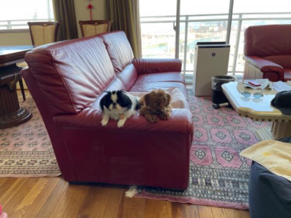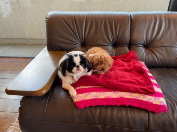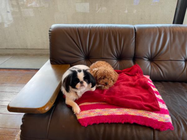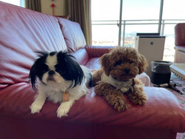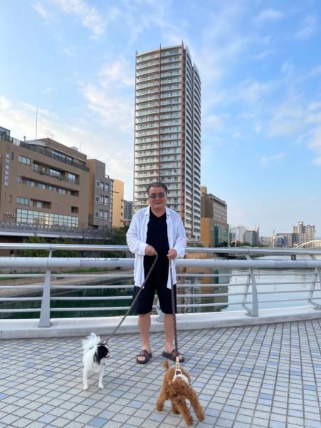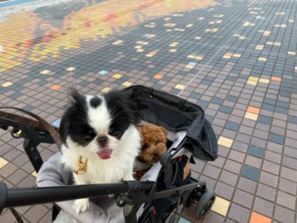 花子、桃子、朝の散策です。気候がよくなって気持ちが良いです。