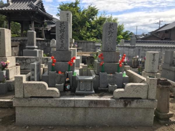 中津市寺町円応寺にあります。お酒が好きな人でしたので、お酒を捧げました。