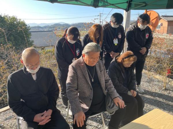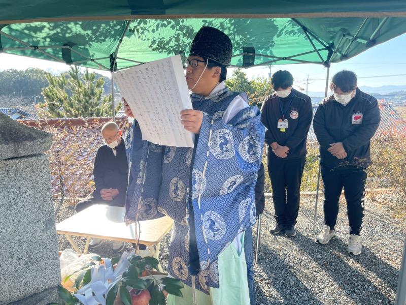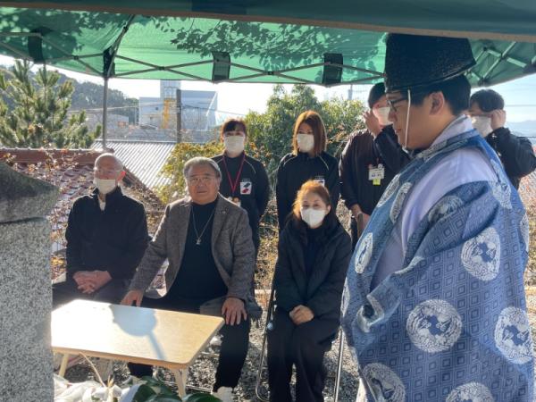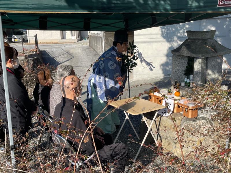 権現堂、楠木神木、英彦山神宮の神主お祓い。まい